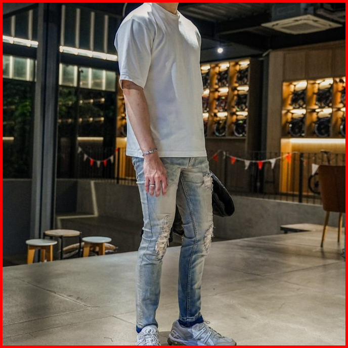 Weird Jeans - Tanned Blue - Celana Jeans Panjang Pria Slim Fit Strech Ripped Patch Kulit Leather Warna Biru