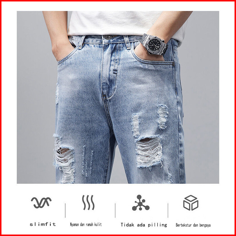 Medivh Celana Jeans Celana Panjang Sobek Pria Celana Ripped Jeans Pria Celana Jeans Slim Fit Pria Celana Jeans Pria Orig
