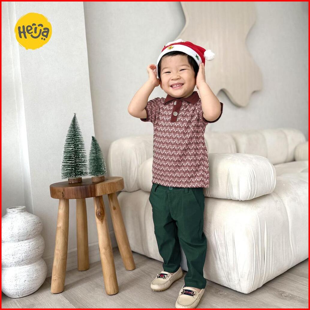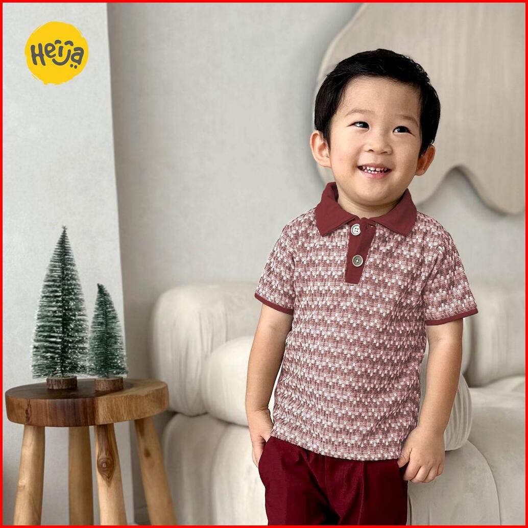 Heija Polo Anak Motif Rajut Warna Merah Maroon - Kaos Polo Shirt Kerah Anak Knit Couple Pria Ayah Tetris Polo Shi