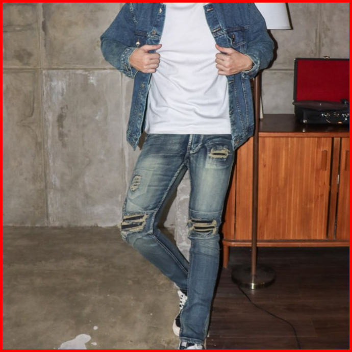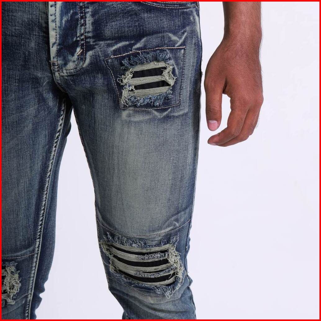 Weird Jeans - Zyn Blue - Celana Jeans Panjang Pria Slimfit Strech Ripped Tambal