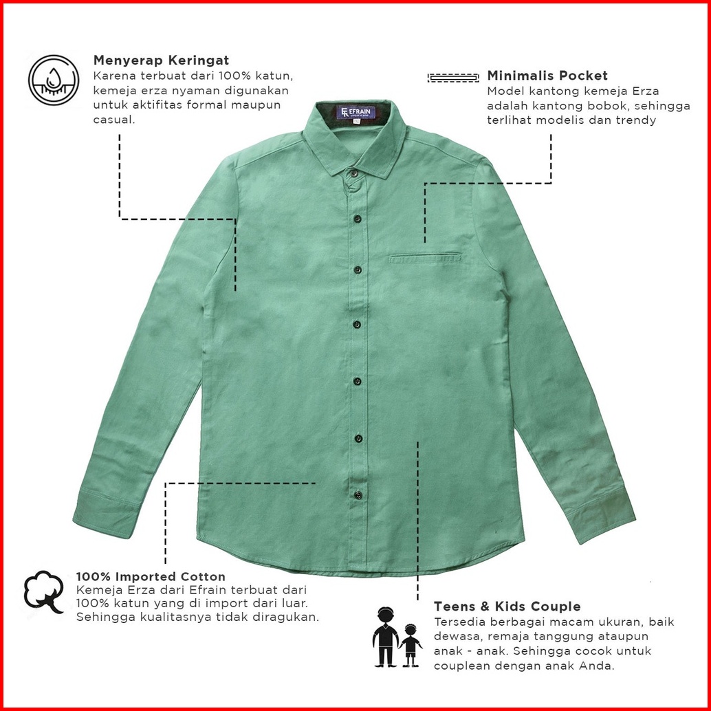 Heija X Efrain - Kemeja Couple Anak Laki - Laki Dan Ayah Lengan Panjang Hijau Wardah Sage Mint