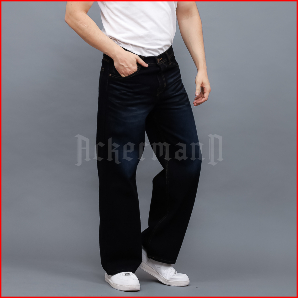 Ackermann - Loose Jeans Pria Celana Jeans Denim Baggy Style Snow Black Kasual Premium