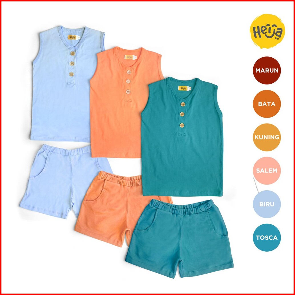 Kaos Anak Lengan Buntung Setelan Baju Rumah Ozy Warna Motif Polos 1-10 Tahun