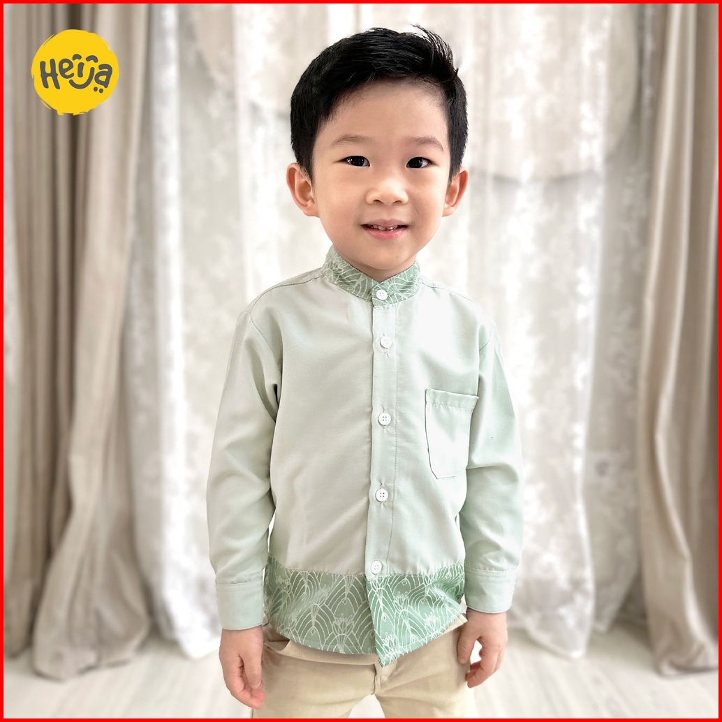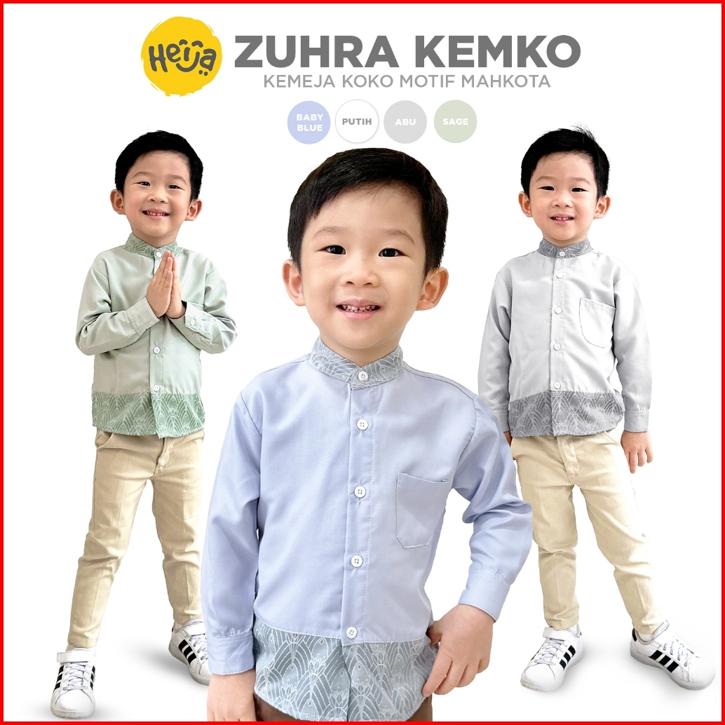 Heija Kids Raya Collection Zuhra Shirt - Kemeja Koko Anak Lengan Panjang Baju Lebaran Motif Mahkota Pakaian Muslim Coupl