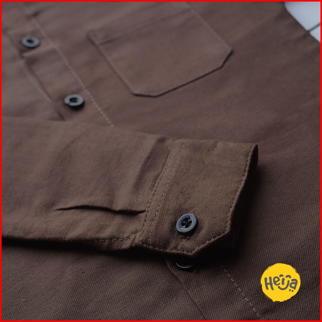 Kemeja Koko Anak Lengan Panjang Kancing Couple Ayah Dewasa - Coklat Tua Mahogany Novus Shirt Heija