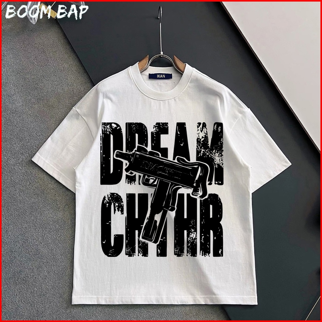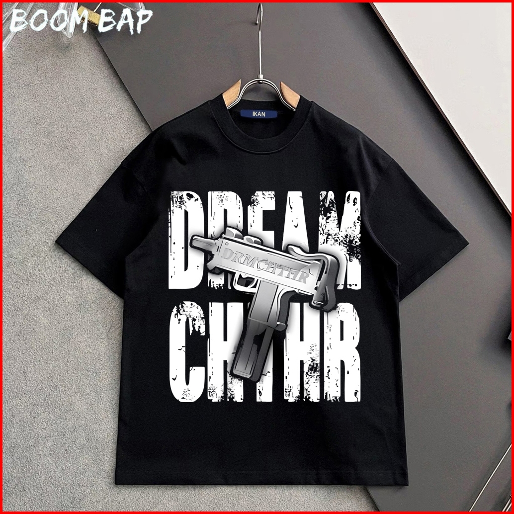 Boombap American Retro Style T-shirt Oversize Dream Chihr Print Top Kaos Wanita Hitam Kaos Pria Dan Wanita Street Style