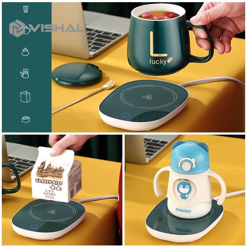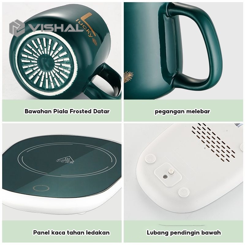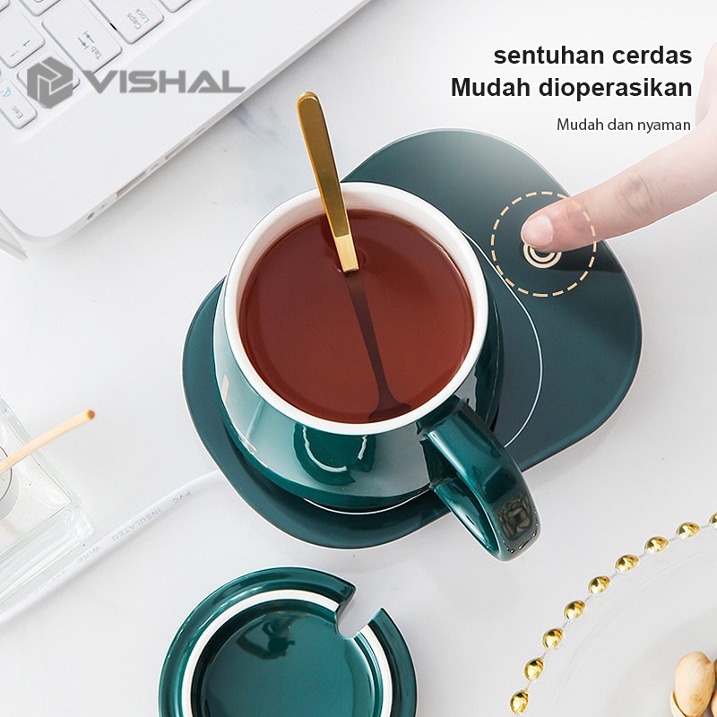 VISHAL Mug Cangkir Elektrik Set Keramik 55 Derajat Penghangat Kopi Gelas Mewah Keramik Listrik dan Sendok VS-1847