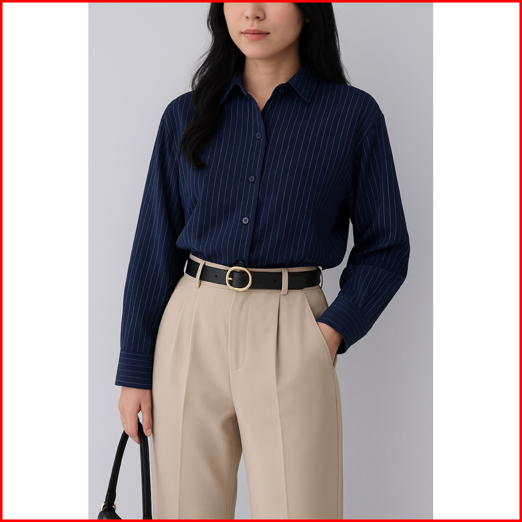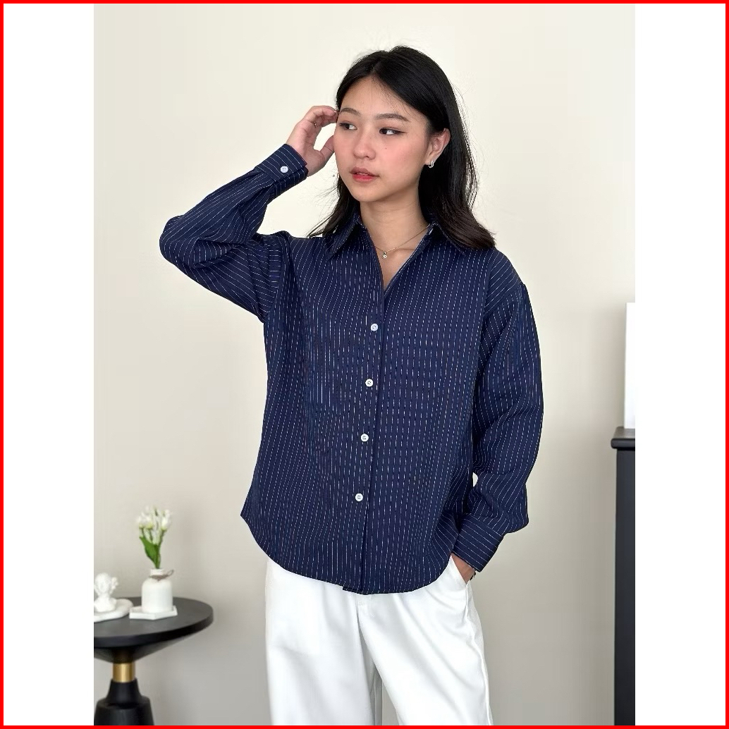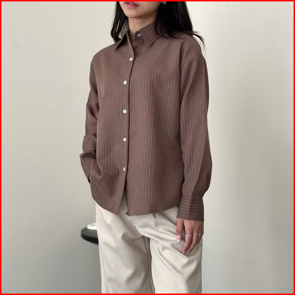Kathy Shirt - Women Striped Collar Shirt Long Sleeve - Atasan Kemeja Wanita Flowly