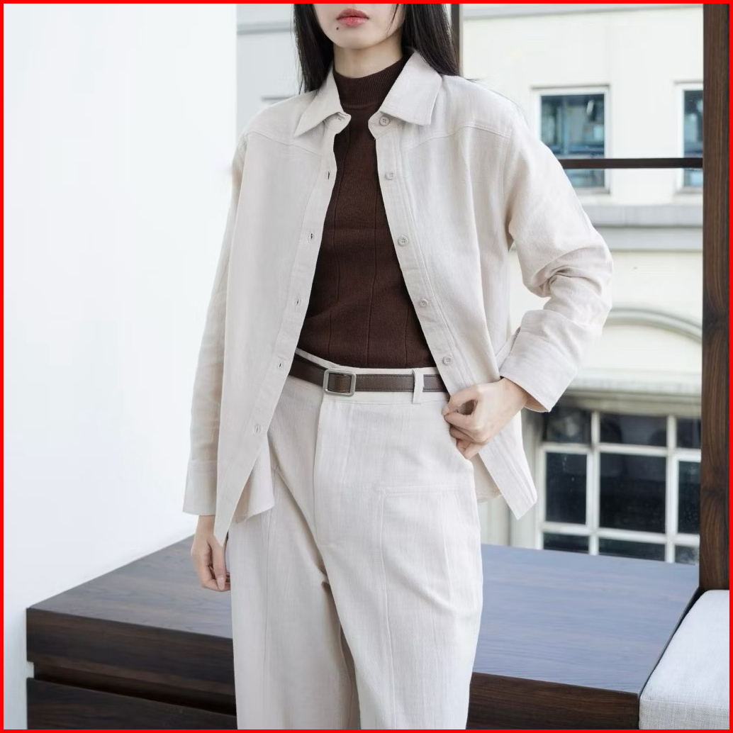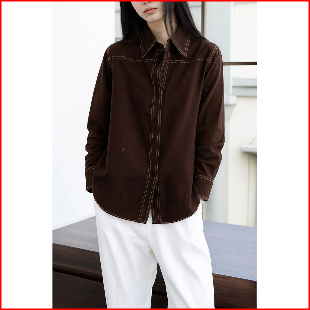 Norris Contrast Stitch Shirt Kemeja Wanita Oversize Lengan Panjang Premium Korea