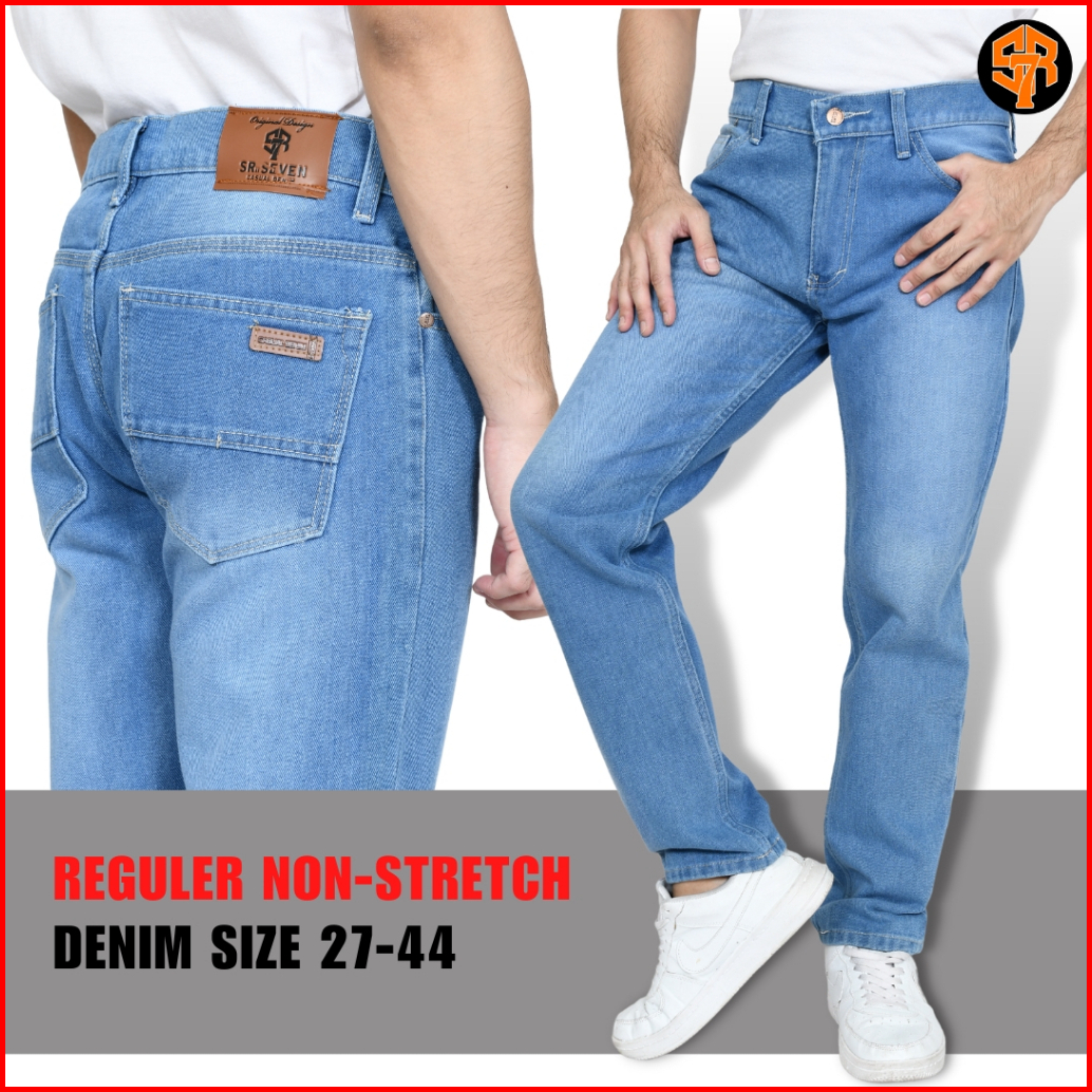 Srseven7 Celana Jeans Panjang Pria Reguler Big Size Ice Blue