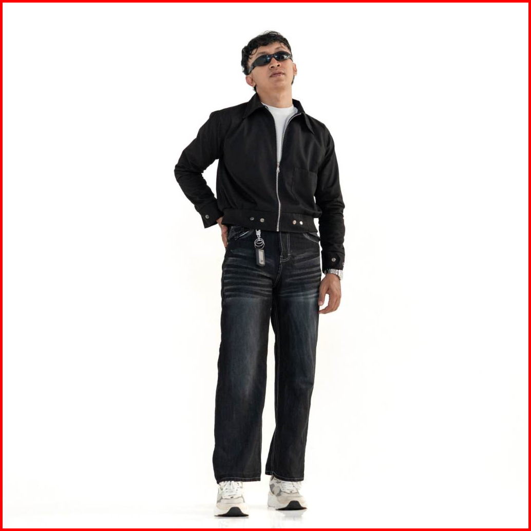 Jinsyou - Celana Jeans Wide Leg Wisker Gombrang Black Jazz Pria Loose Fit Jumbo Keren Denim Oversize