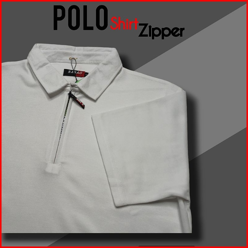Kaos Kerah Polo Shirt Pria Polos Lengan Pendek Zipper Putih M L Xl Xxl
