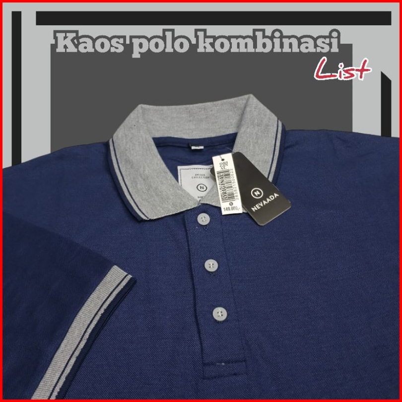 Baju Kaos Kerah Pria Polo Shirt Nevaada Berkerah Lengan Pendek Kombinasi List Kancing Polo Kaos Kerah Pria Wanita