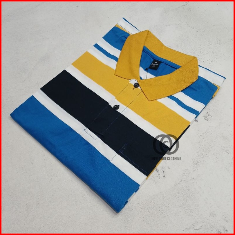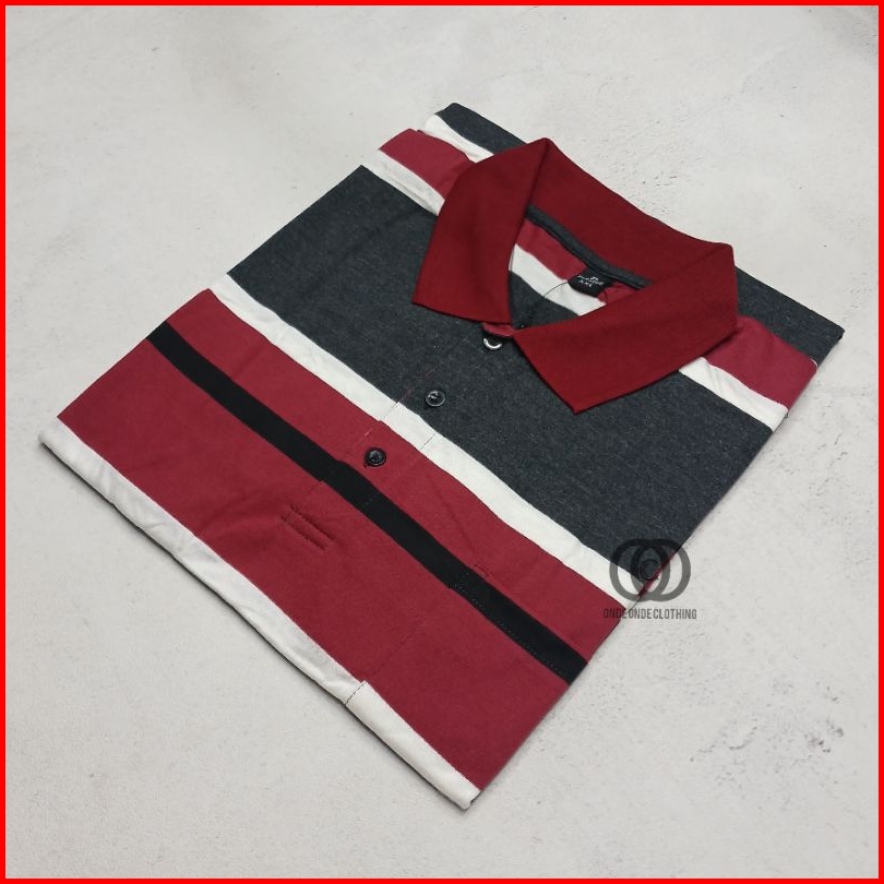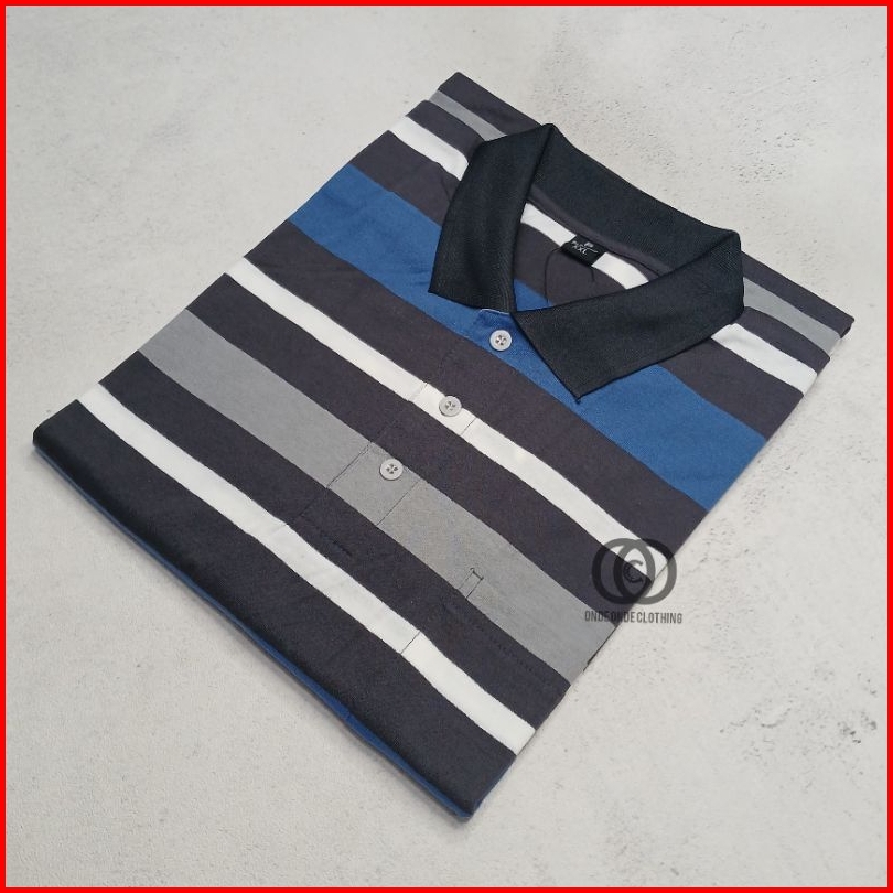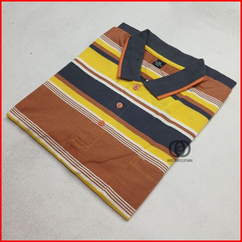 Kaos Salur Kerah Pria Dewasa Motif Garis Garis Salur Afada Berkerah Wangki Lengan Pendek Kantong Depan