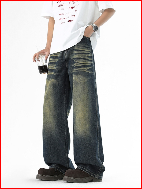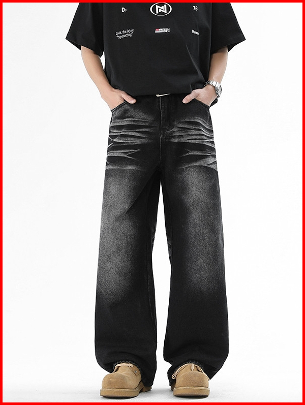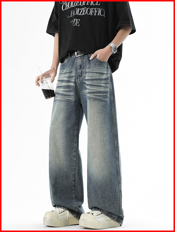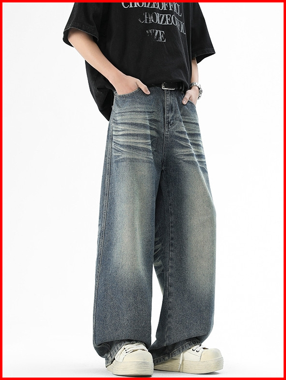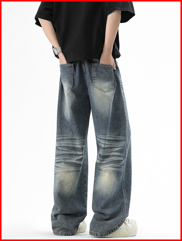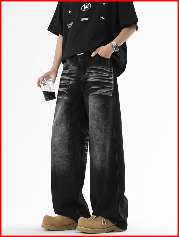 Disai - Celana Jeans Pria Celana Baggy Jeans Gombrong Oversize Straight Dewasa Denim Kulot Pria