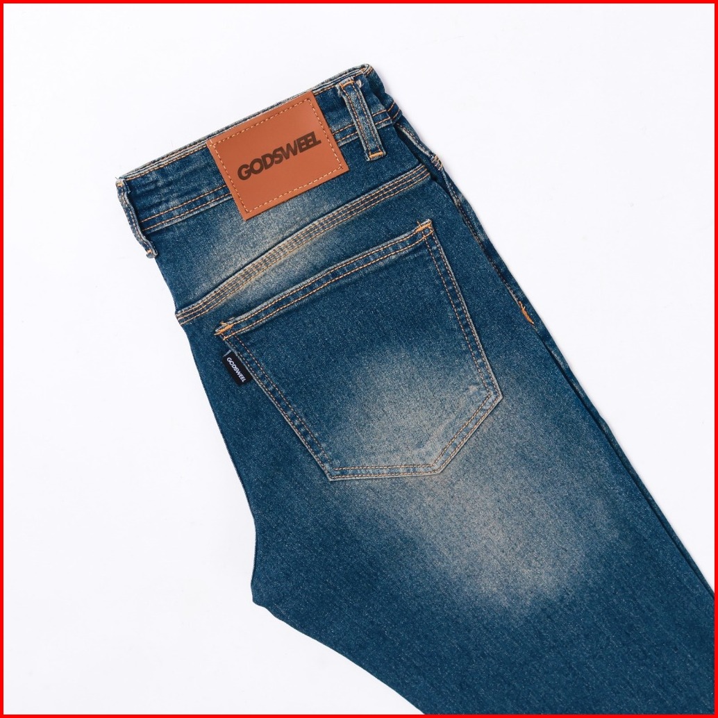 Godsweel Celana Jeans Pria Panjang Slimfit Stretch Biotink Aksen Selvedge