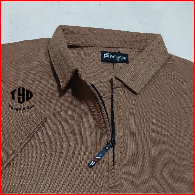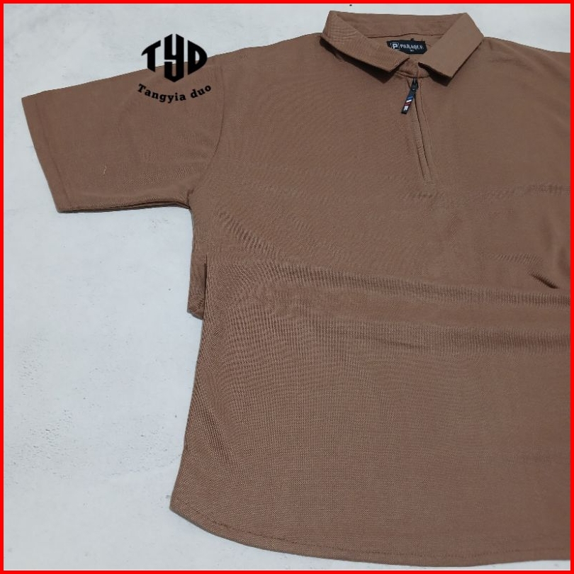 Tangyia Duo - Kaos Polo Shirt Polos Zipper Cokelat M L Xl Xxl