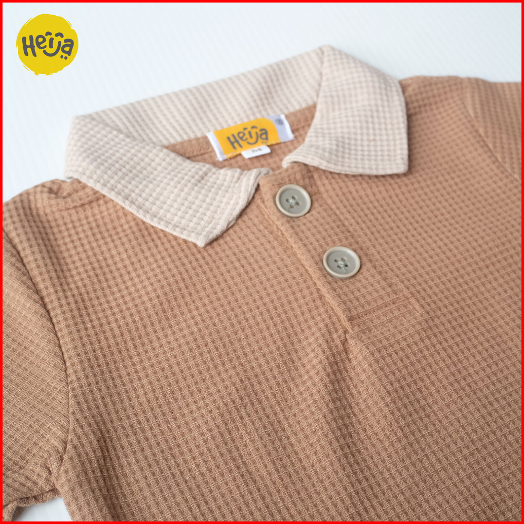 Polo Shirt Anak Warna Coklat Moka Motif Waffle - Kaos Polo Kerah Anak Cokelat Mocca Couple Pria Ayah Waflo Polo S