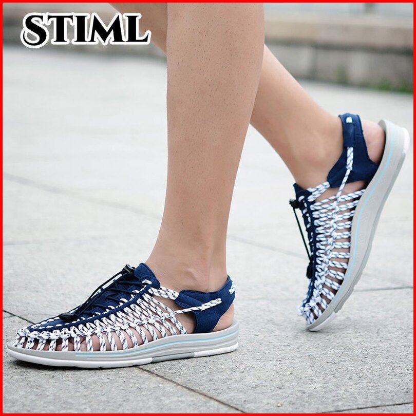 Stiml 2025 Sepatu Sendal Tali Rajut Pria White Navy Hiking Trekking Handmade Olahraga Keren Sandal