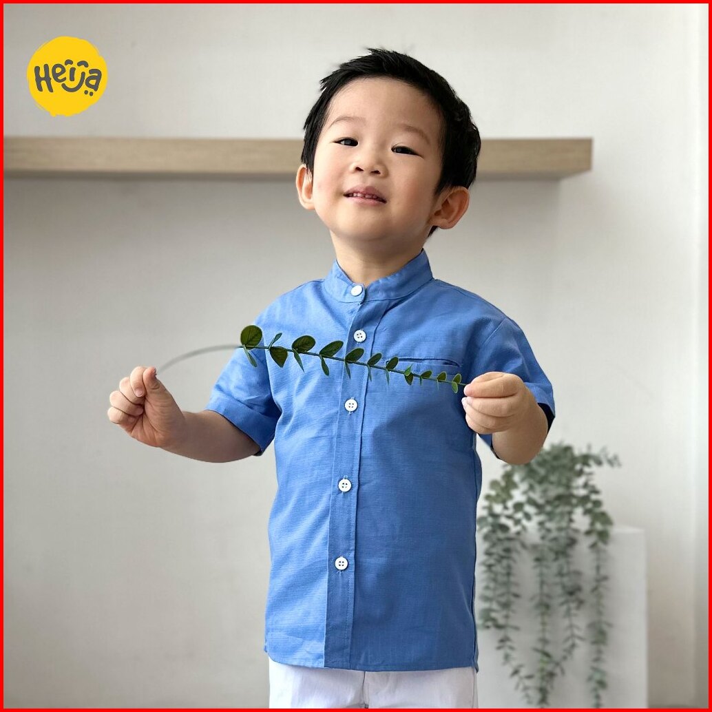 Kemeja Koko Anak Lengan Pendek - Biru Denim Tua - Katun Sigret - Remaja Tanggung Anak Couple Ayah Anak - Heija X Efrain