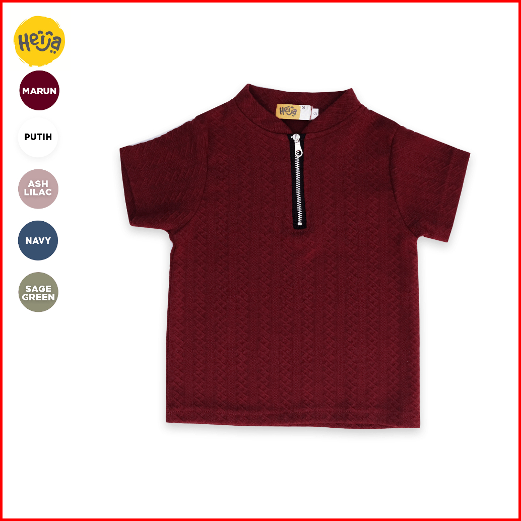 Polo Anak Resleting Motif Twist Timbul Warna Merah Maroon - Kaos Polo Shirt Anak Zipper Colarless Kerah Koko Shanghai Un