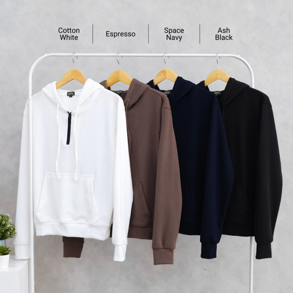 SANVANINA Kai Zip Hoodie Jacket | Outer Jacket Pria Knit | Hoodie Half Zip Jaket Sweater Panjang