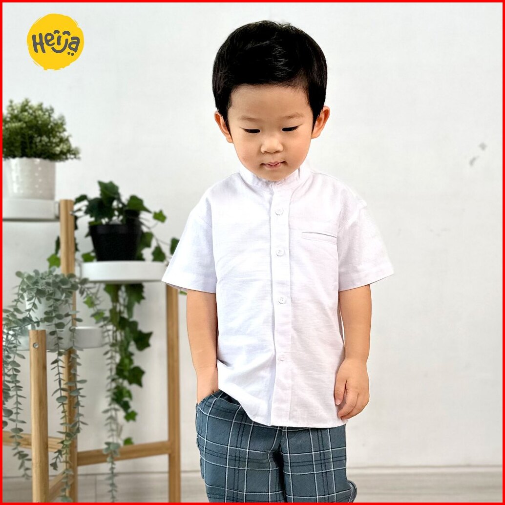 Kemeja Anak Cowok Putih Lengan Pendek Atasan Anak Laki Laki Couple Anak Ayah Katun Sigret - Heija X Efrain