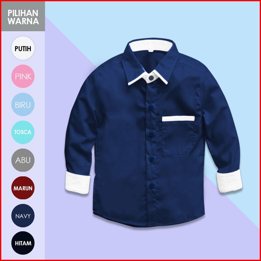 Kemeja Anak Lengan Panjang Biru Navy 1 - 10 Tahun Heija