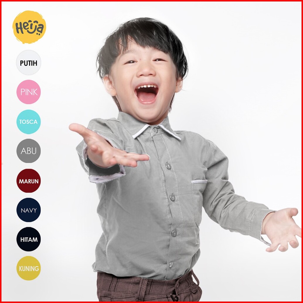 Kemeja Anak Lengan Panjang Abu Abu Polos 1 - 10 Tahun Heija