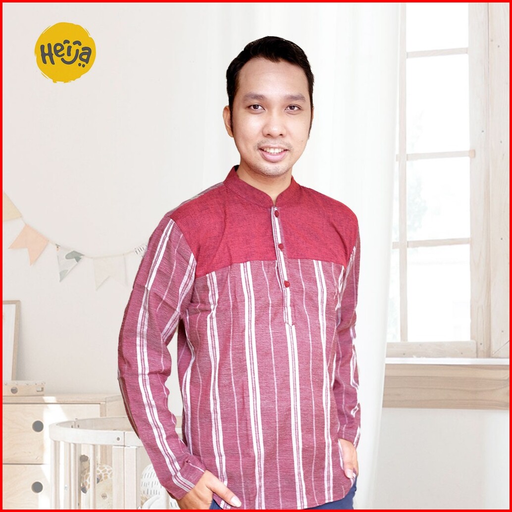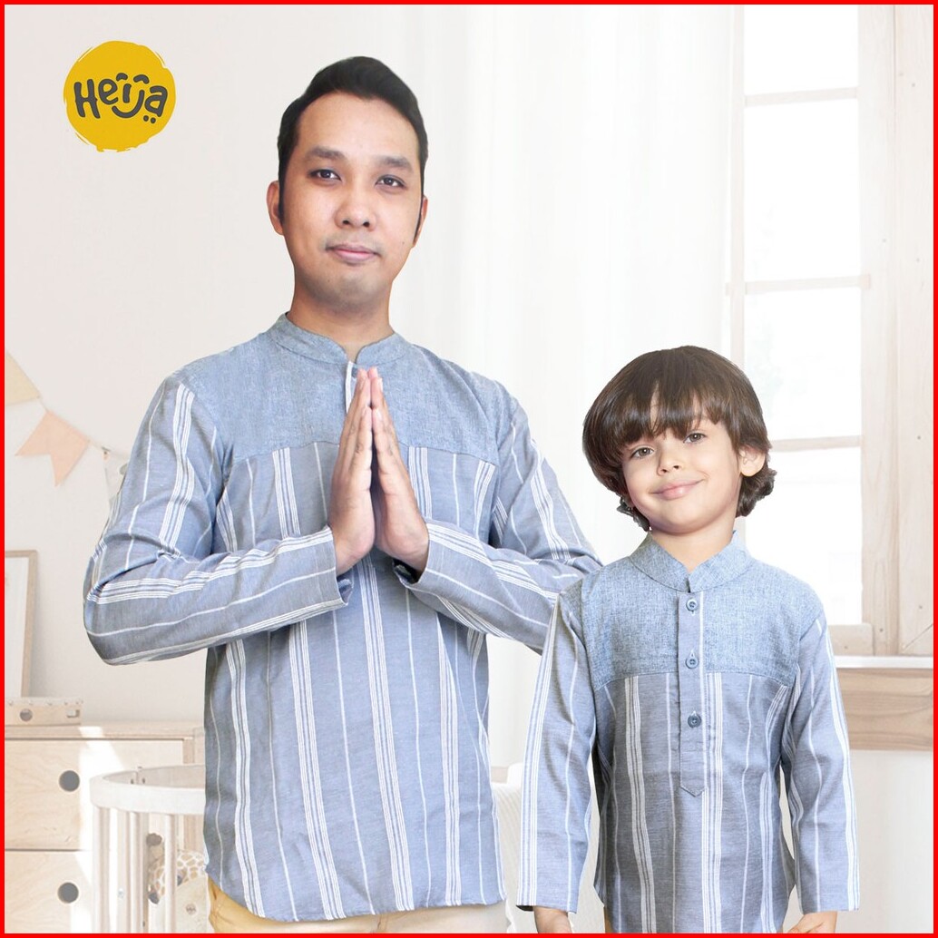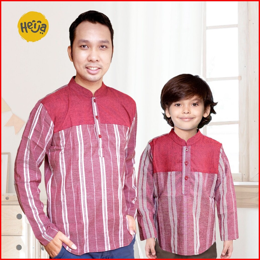 Kemeja Koko Salur Kembaran Ayah Anak Lengan Panjang Warna Abu Merah Marun Garis Edisi Couple Lebaran