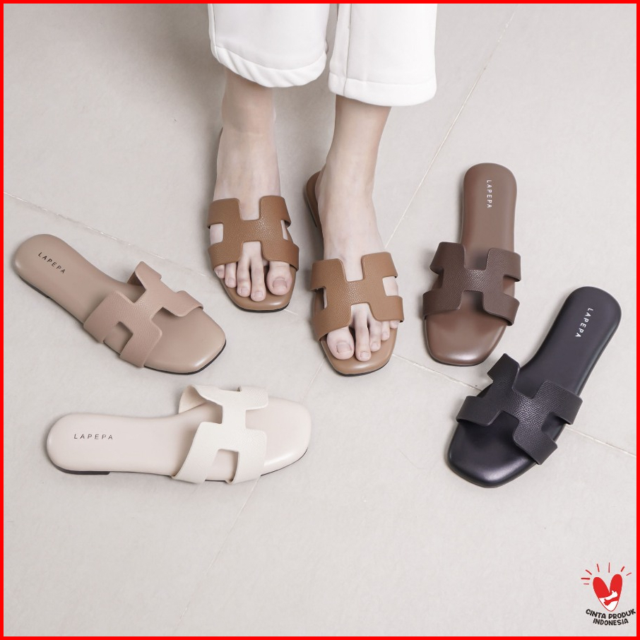 Lapepa Yuk - Orlin Sandal Wanita Teplek Korea Casual Premium Size 36 - 41 Sendal Slop Empuk Flat Cewek Kasual Rumahan