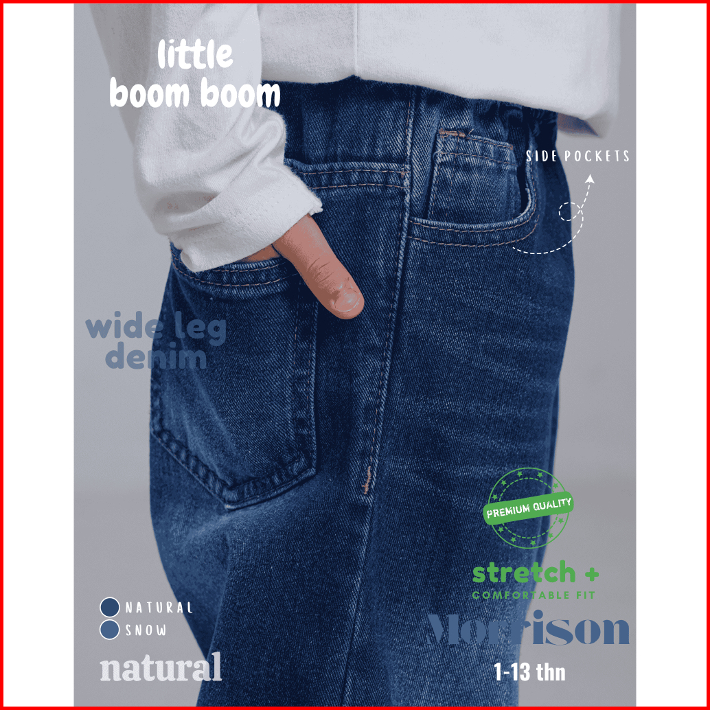Little Boom Boom - Celana Panjang Skena Jeans Anak Laki Laki Wide Loose Fit 5-11 Tahun Premium Wash