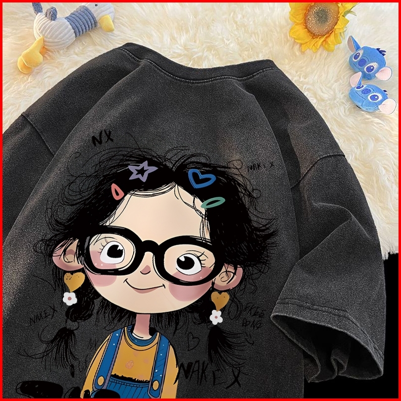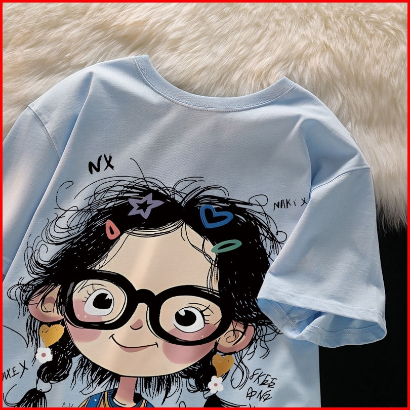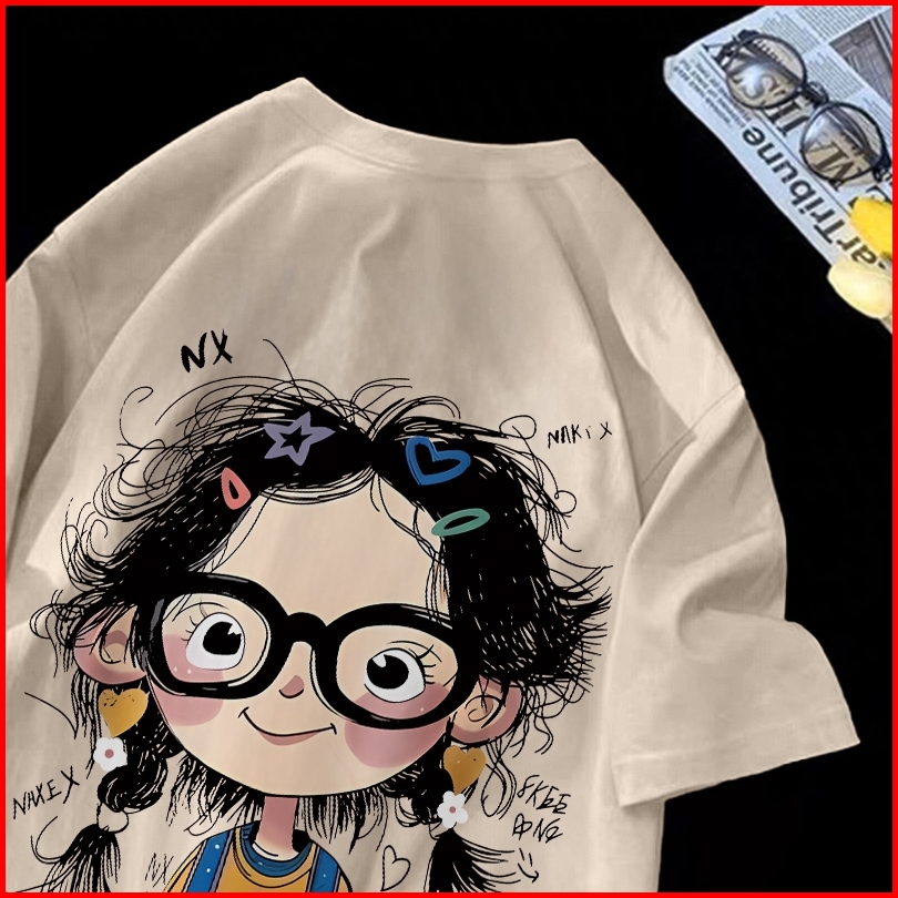 Forteid T-shirt Short Sleeve Baju Kaos Oversize Baju Korean Women S T-shirt Atasan Wanita Terbaru Pola Cetak Gambar Gadi