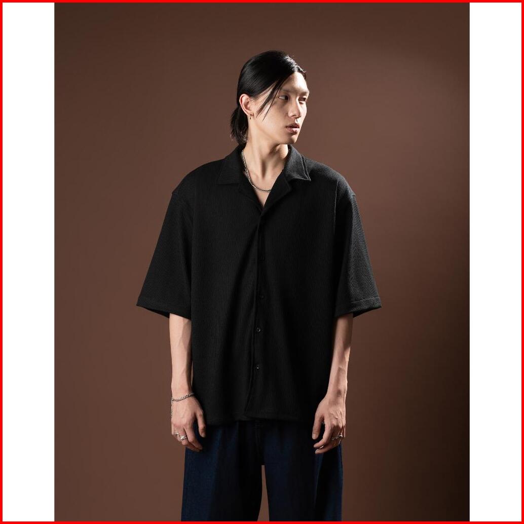 Thesilversky Kemeja Resort Micro Waffle Boxy Oversized Premium Men Shirt Pria