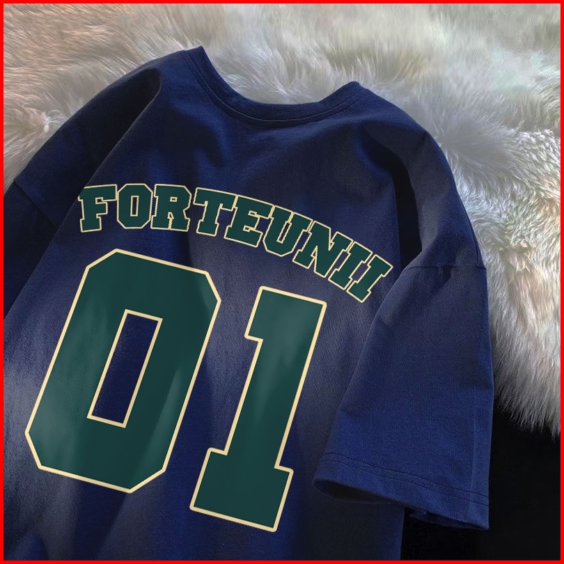 Forteid Biru Laut T-shirt Lengan Pendek Baju Kaos Oversize Wanita Baju Kaus Wanita Korea Baju Atasan Wanita Terbaru Ceta