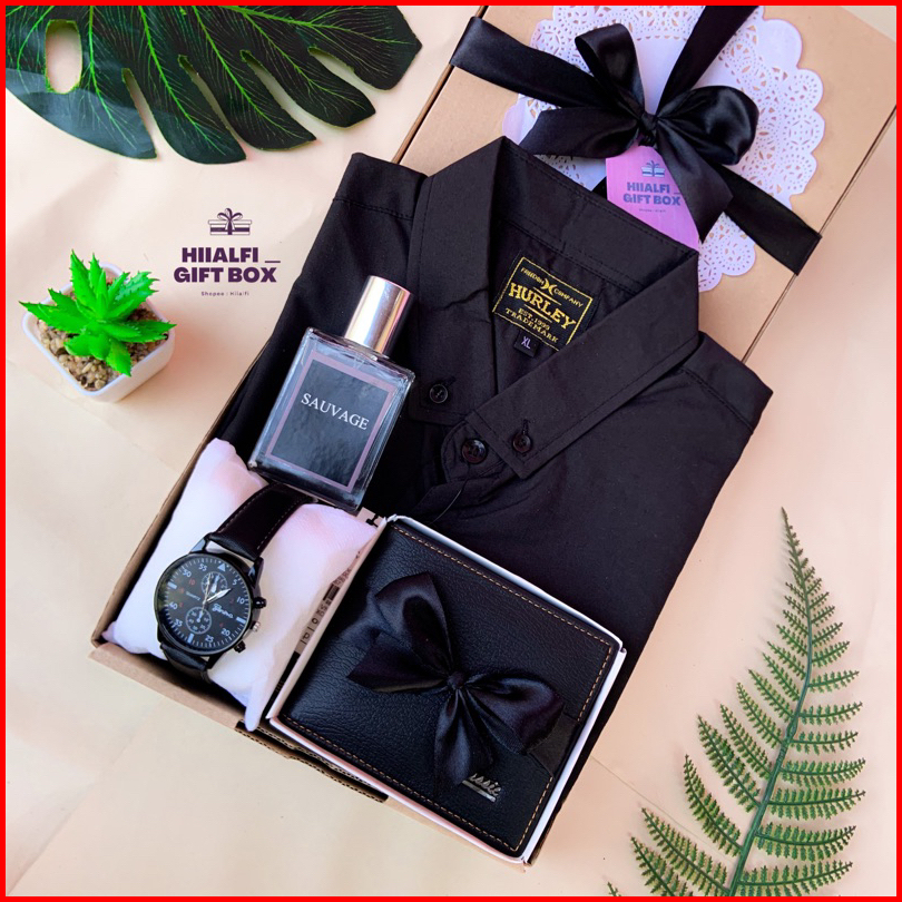 Hempers Cowok Gift Box Paket Salman Hampers Kaos Kemeja Cowok Parfum Cowok Jamtangandompetby Hiialfi