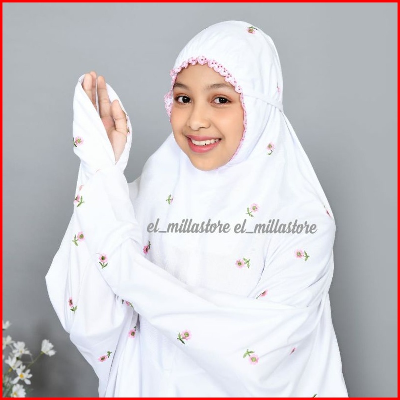 Mukena Terusan Anak Remaja Tanggung Bordir Seribu Bunga Aster