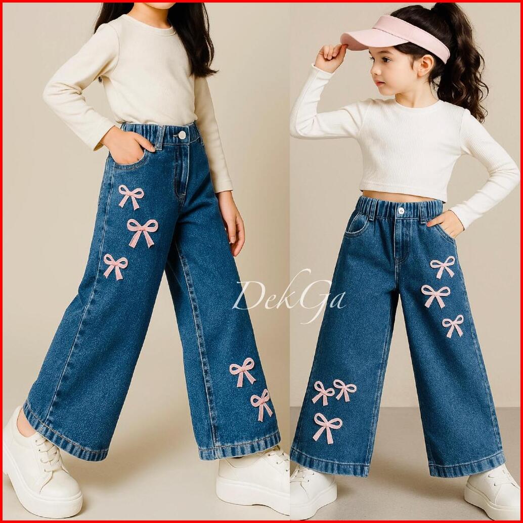 3-12tahun Celana Kulot Bordir Pita Anak Perempuan Celana Jeans Anak Kulot Harian Dan Jalan Jalan Fashion Anak Model Kore
