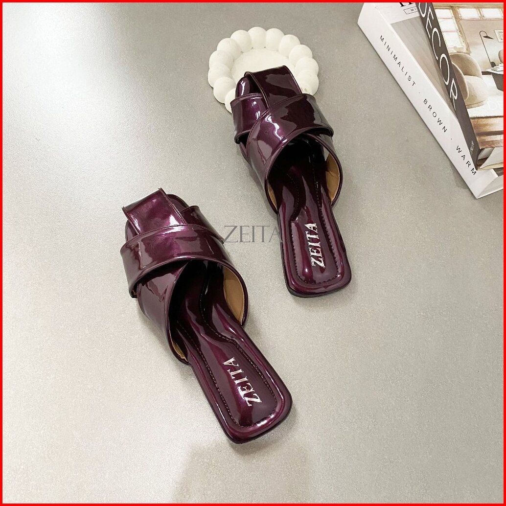 Zeita Sandal Selop Wanita Terbaru Coklat Glosy Sandal Teplek Wanita Bigsize 37-44