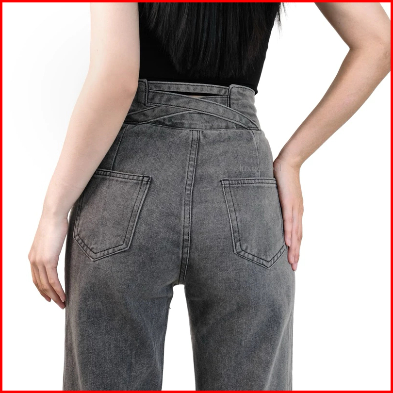 Celana Highwaist Jeans J23 Wanita - Straight Jeans - High Loose Jeans - Jeans Silang X Wanita Abu