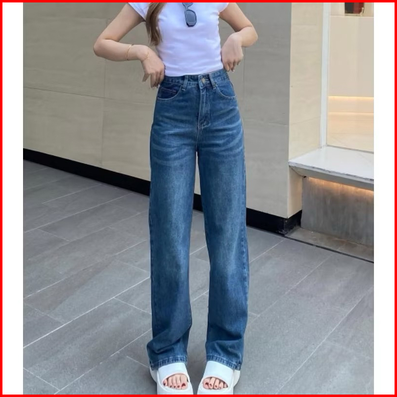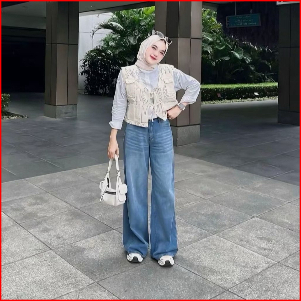 Celana Highwaist Kulot Loose Jeans Wisker Retro Wanita Korean Style -bahan Jeans 12os Premium
