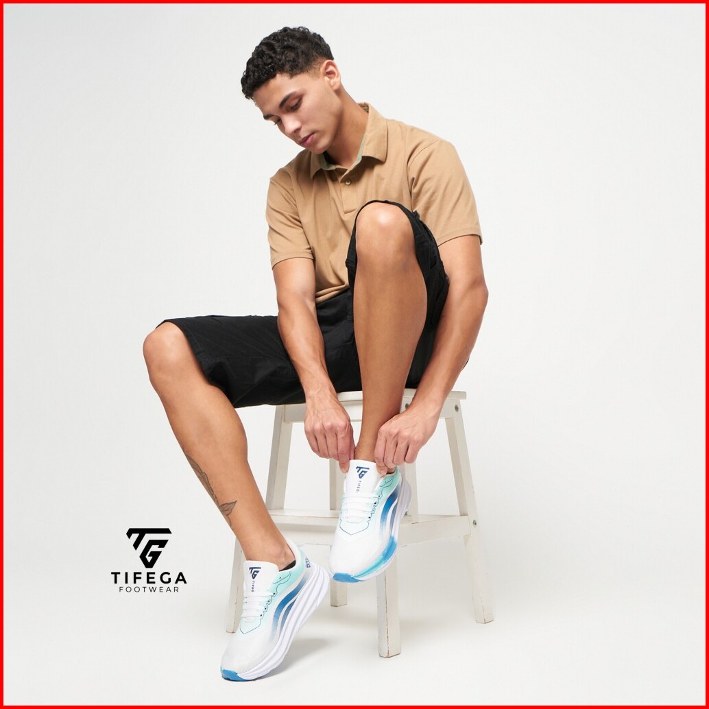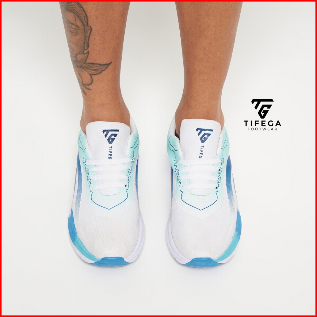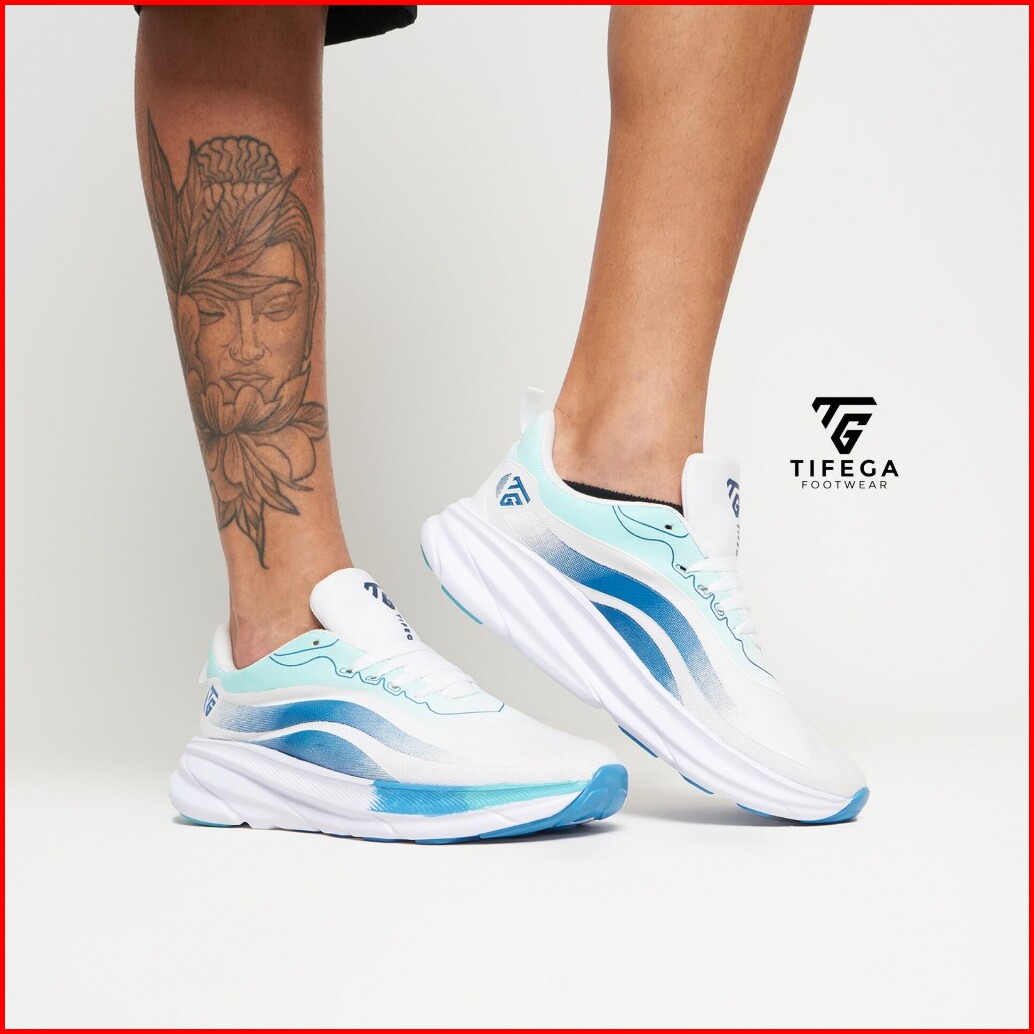 Tifega Footwear - Sepatu Pria Sneakers Running Mens Shoes Tg18003 White Blue Sneaker Pria Bertali 40-44