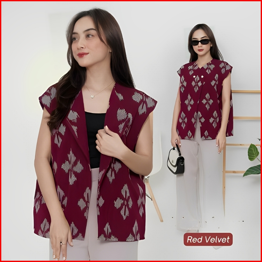Yura Vest Tenun Outer Premium Rompi Atasan Vest Batik Wanita Vest Batik