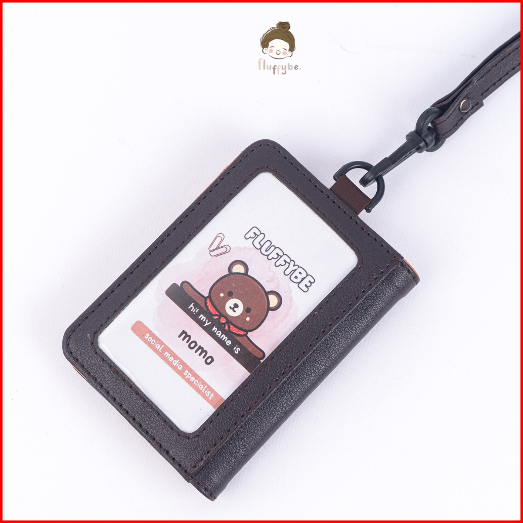 Lanyard Id Card Dompet Kartu Gantungan Name Tag Multifungsi Dark Brown-brown
