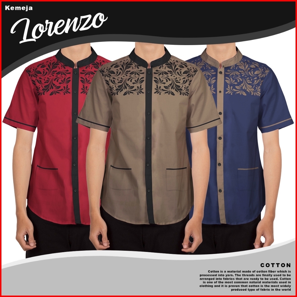 Fortklass Lorenzo Kemeja Koko Pria Lengan Pendek Baju Muslim Pria Baju Koko Sablon Motif Kemeja Tangan Panjang Lebaran K
