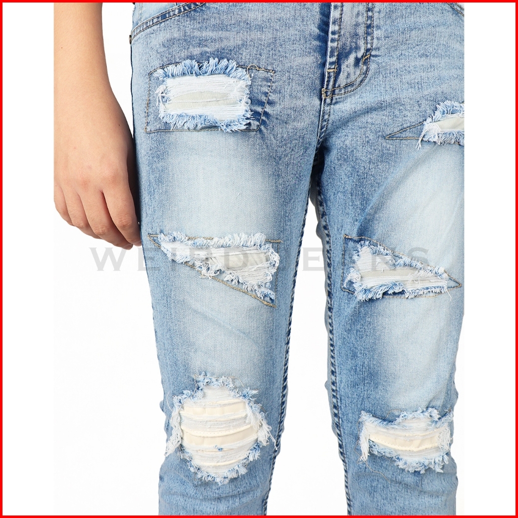 Weird Jeans - Neptune Blue - Celana Jeans Panjang Pria Slim Fit Strech Celana Sobek Leather