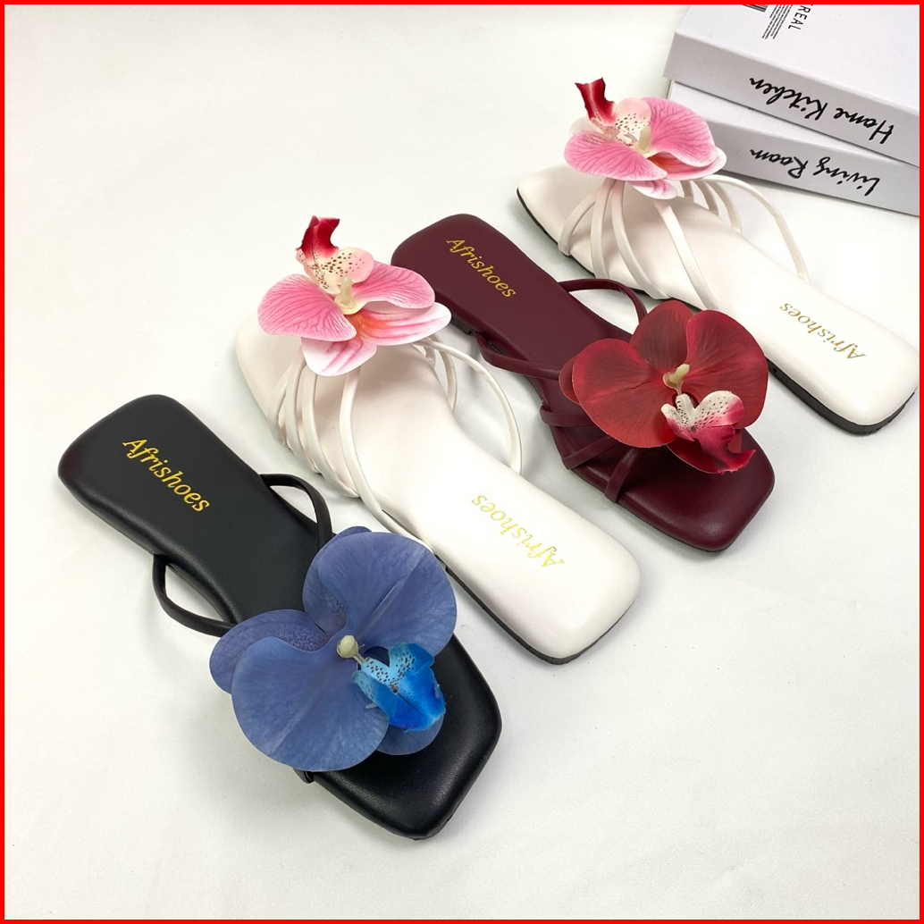 Afrishoes Anna Orchid Flat Sandal Teplek Bunga Anggrek
