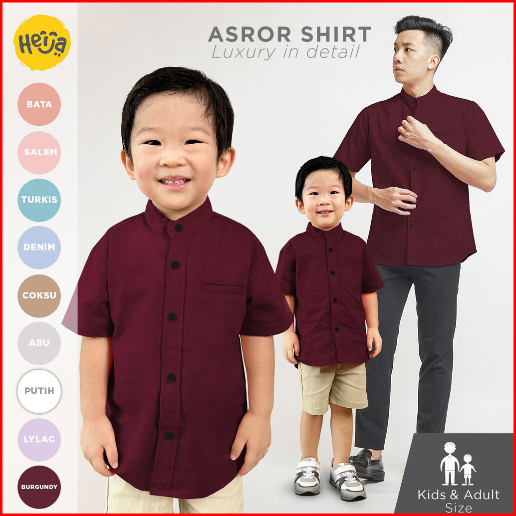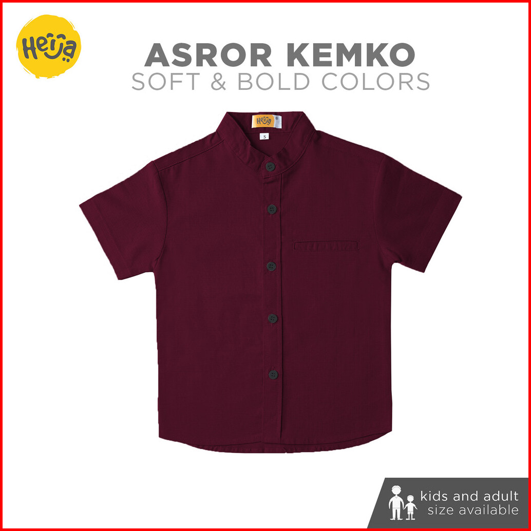 Heija Asror Burgundy - Kemeja Koko Anak Lengan Pendek Warna Merah Burgundy Ungu Katun Sigret - Remaja Tanggung Anak Coup