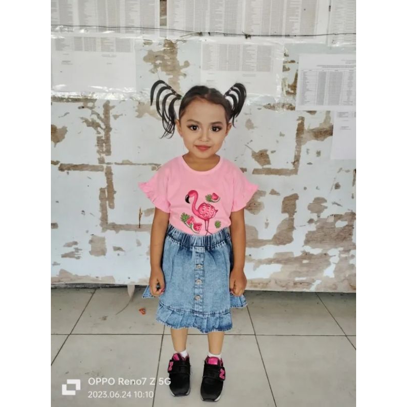Rok Jeans Anak Pendek Rok Rempel Anak Jeans Snow Wash Blue 1-7 Tahun