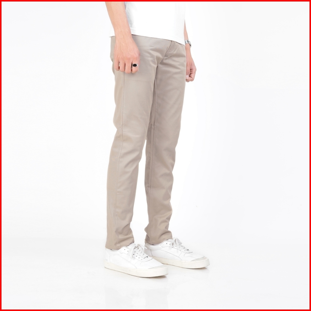 Volkvog Jeans Celana Panjang Chino Barry Pria Slimfit Beige Khaki Muda